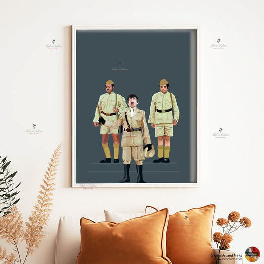 Bollywood Art-Asrani,Movie Poster,Indian Films,Wall Decor,Desi Art Print,Drawing,Retro Poster,Vintage film Poster,UNFRAMED Art Print